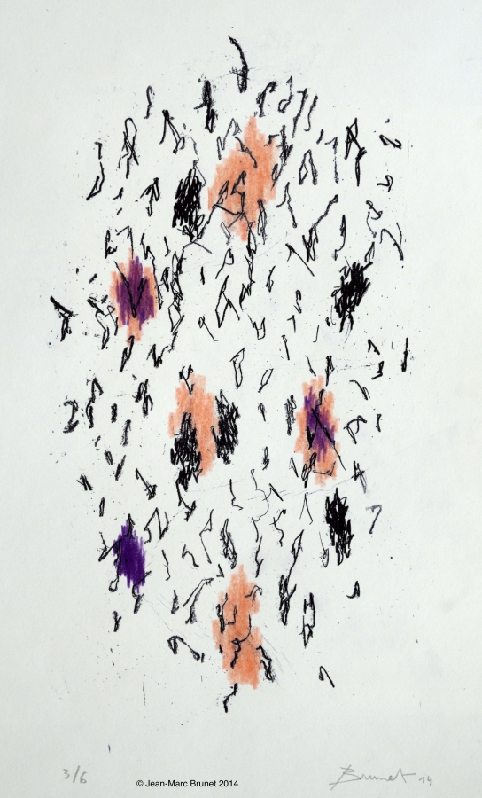 (north part of France)in 1996. His abstract works, canvas and engravings, made firstly reference to the geometry, and mostly evoke the nature today. Jean-Marc Brunet mainly uses oil and canvas and engraving technics, but keep up an interest in various supports and technics such as ink or watercolor on paper for instance. He practices sculpture as well. Jean-Marc is a man of openminded contact and enjoys very much meeting people and exchanging views,discovering countries and cultures. Today he draws inspiration from Nature (flowers, birds, …) music and poetry.Meeting people and enjoying friendship (with JeanMarc Natel, Michel Butor, Jean Orizet for instance) leads Jean-Marc Brunet to many « cowritten » books were painting or drawing on the one hand, music, poetry or dance on the other hand, can be a source of inspiration or a way of illustration to each others. Additionally Jean Marc participates to many solo or collective art exhibitions worldwide. He particularly enjoys very much to share his very rich experience with art connoisseurs and collectors.