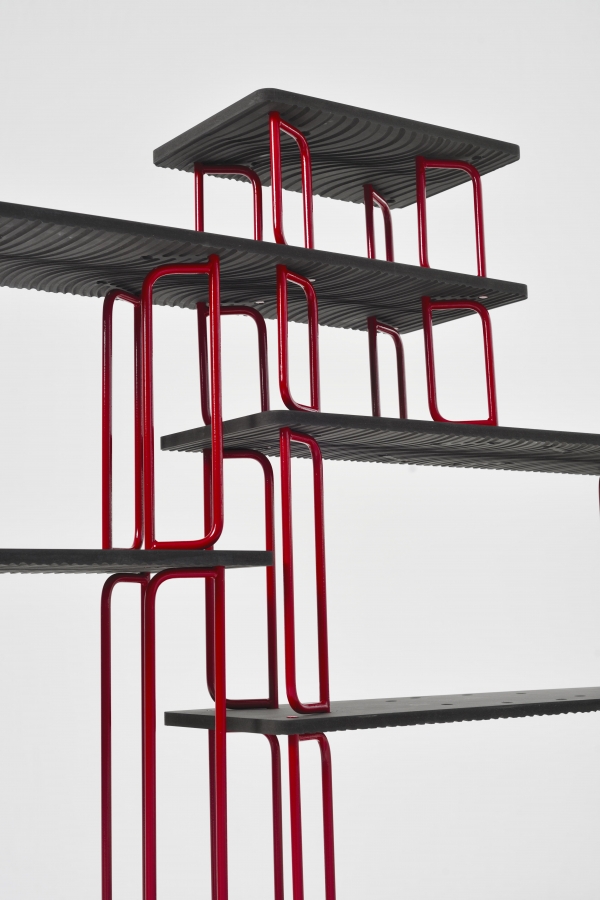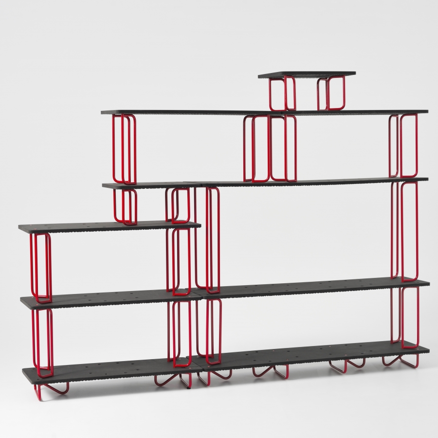 bookshelves elements with a sober design, made of steel and wood, and a modularity allowing a friendly space arrangement