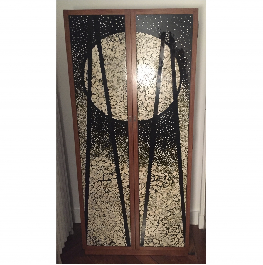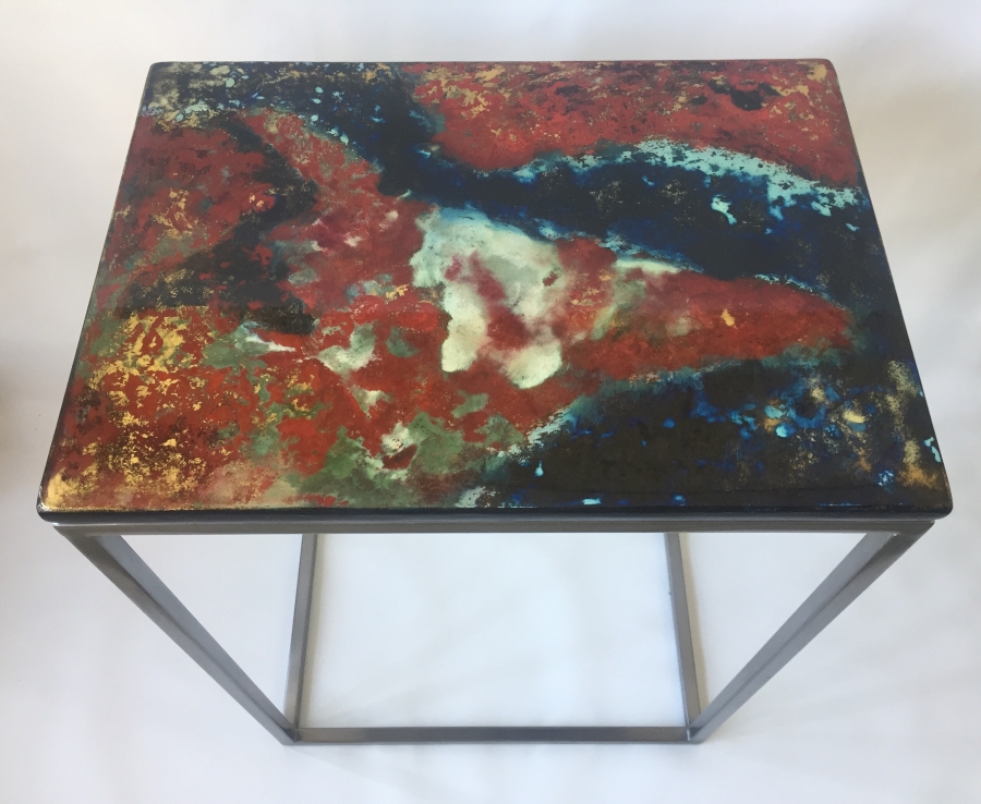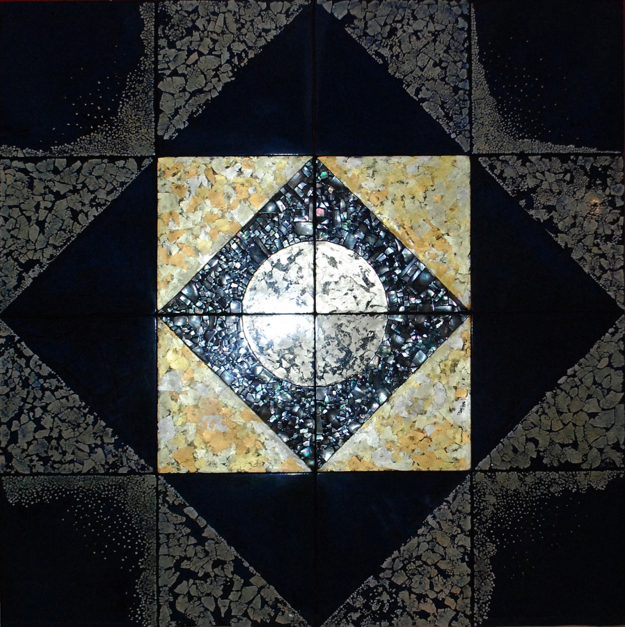 A lacquerer and creative painter-artist, Stephanie Seruzier graduated from the Bourges School of Fine Arts and started her activity in 2000 Her first workshop was in Paris, and the second one set up in Burgundy - south part of France - in 2005. Within a first step she was active with painting,using oil on canvas or mixed media. She focused her creative research on symbolism and mysticism, non figurative painting, and on the way to highlight the materials characteristics. This last part led her to seek for a specific media highlighting colors and gloss like done by the sea waves recovering rocks. Then she discovered the lacquer medium and made it her favorite one. Today Stephanie lacquers on wood, metal, or ceramic . Stephanie Seruzier uses not only a huge range of color pigments, but also gold leaf and specific stones such as agate, lapis-lazuli and tourmaline. Getting the satisfying lacquered artwork requires numerous steps, and a high-precision job. She draws inspiration from multiple origins : cartography, sea landscapes and coral reefs, geometric shapes, mineral or vegetal worlds. Stephanie proposes works along her own inspiration but also makes bespoke unique pieces. The final work can be a lacquered wall panel, a piece of furniture, or a lightning device for instance. She enjoys to share with the connoisseur this new shining interpretation of existing worlds, bringing poetry, soft touch, transparency.