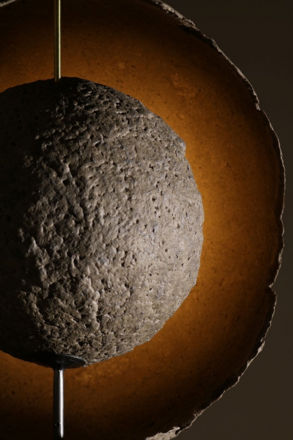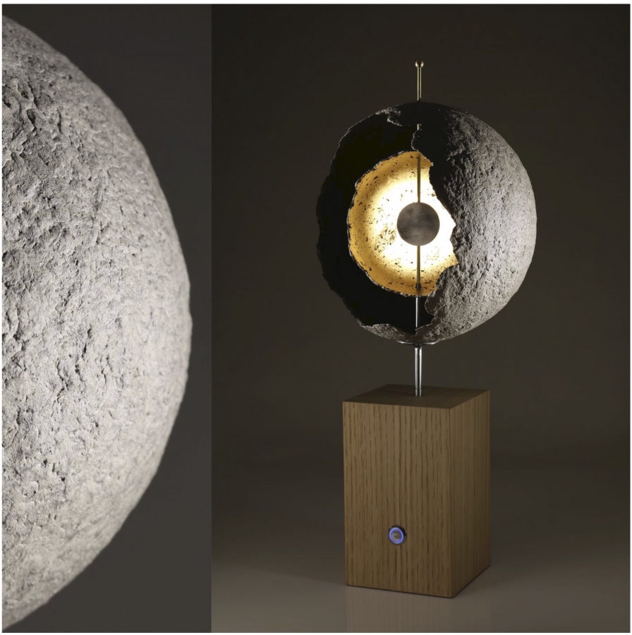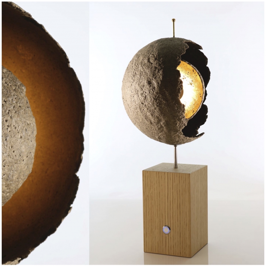 sculpture bois, fibrociment, feuille d’or dimensions (cm) : 28 x28 x 60