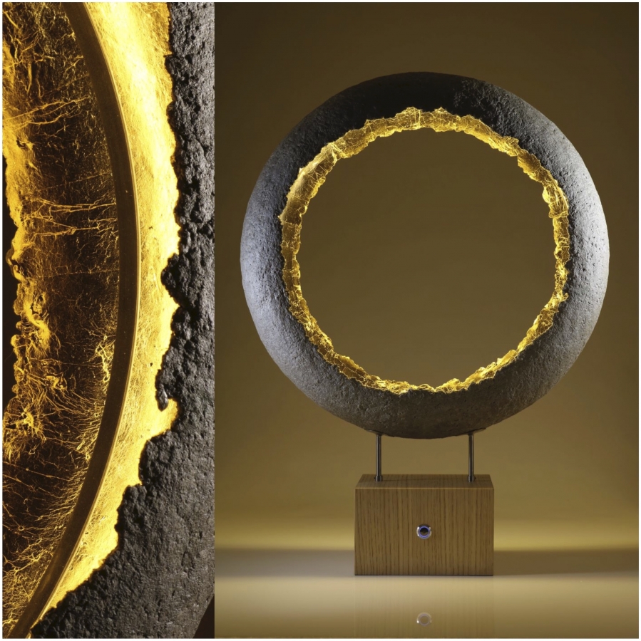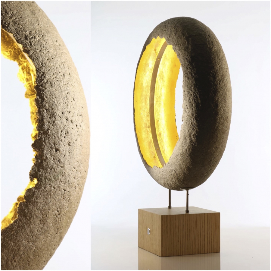 sculpture bois, fibrociment, feuille d’or dimensions (cm) : 21 x 60 x 79