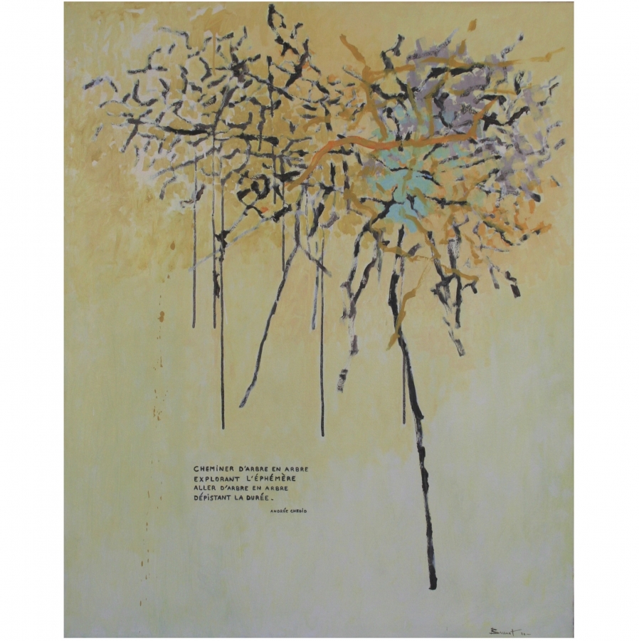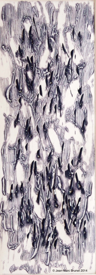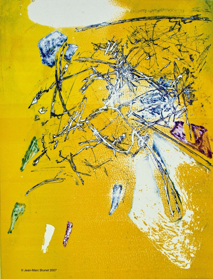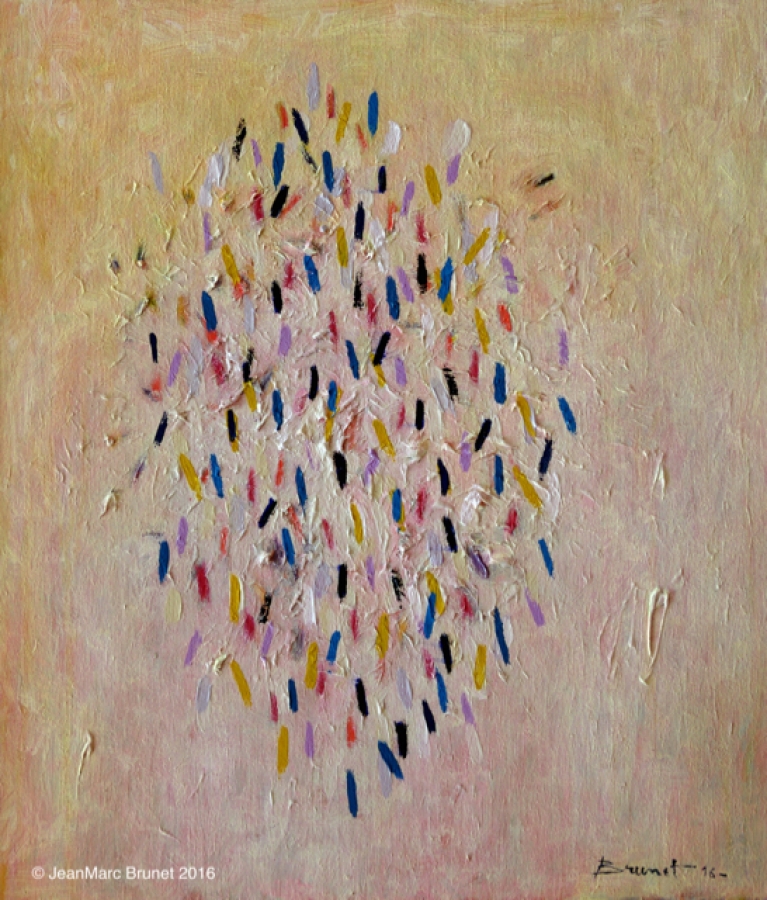 (north part of France)in 1996. His abstract works, canvas and engravings, made firstly reference to the geometry, and mostly evoke the nature today. Jean-Marc Brunet mainly uses oil and canvas and engraving technics, but keep up an interest in various supports and technics such as ink or watercolor on paper for instance. He practices sculpture as well. Jean-Marc is a man of openminded contact and enjoys very much meeting people and exchanging views,discovering countries and cultures. Today he draws inspiration from Nature (flowers, birds, …) music and poetry.Meeting people and enjoying friendship (with JeanMarc Natel, Michel Butor, Jean Orizet for instance) leads Jean-Marc Brunet to many « cowritten » books were painting or drawing on the one hand, music, poetry or dance on the other hand, can be a source of inspiration or a way of illustration to each others. Additionally Jean Marc participates to many solo or collective art exhibitions worldwide. He particularly enjoys very much to share his very rich experience with art connoisseurs and collectors.