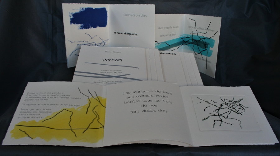 Entrelacs, artist book, 30 copies, poems by Pierre Nicolas, drawings and engravings by Jean-Marc Brunet