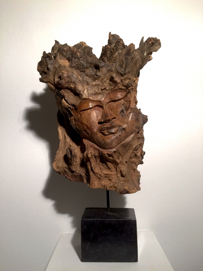 sculpture en bois de teck sur un socle de marbre noir