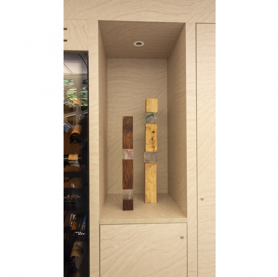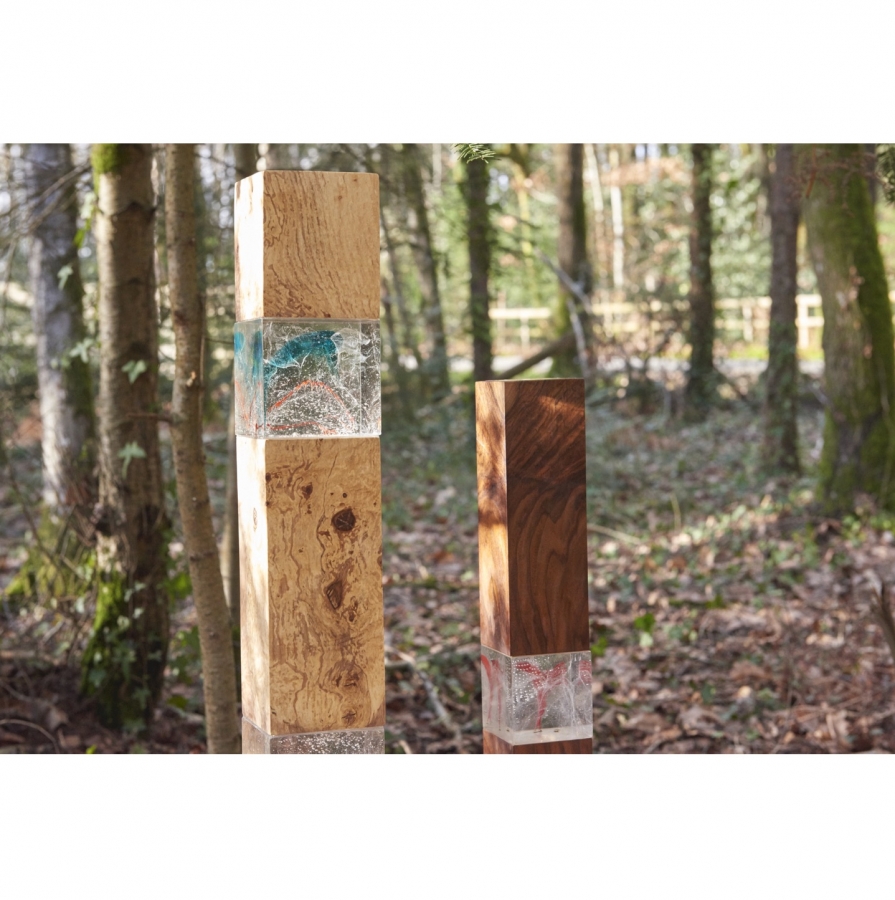 Sculpture pâte de de verre ; bois d’olivier et de noyer massif dimensions (cm) : 630 ou 730 x 78